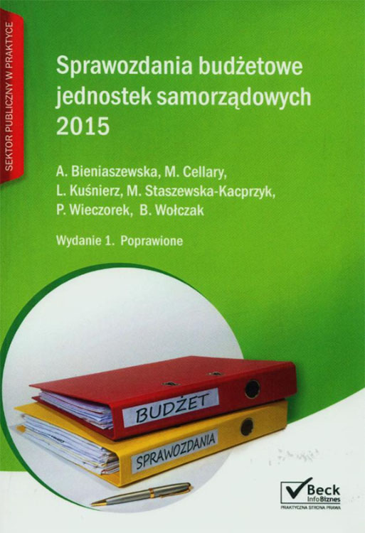 Stan prawny: marzec 2015 r. W naszej książce znajdą Państwo: najnowsze interpretacje Ministerstwa Finansów w zakresie sprawozdawczości budżetowej wyjaśnienia jak wypełniać poszczególne wiersze i kolumny sprawozdań aktualne przykłady sporządzonych sprawozdań powiązania z ewidencją księgową i klasyfikacją budżetową (dnia 1.1.2015 r. weszła w życie nowelizacja klasyfikacji budżetowej), omówienie wydatków strukturalnych, 17 wypełnionych formularzy sprawozdań wraz z komentarzem 290 odpowiedzi na najczęściej zadawane pytania terminarz sporządzania i przekazywania sprawozdań. W książce wyjaśniamy m.in.: kto określa w jakiej formie przekazywać jednostkowe sprawozdania budżetowe? jak i do kiedy sporządzać korekty jednostkowych, zbiorczych sprawozdań budżetowych? jak wykazywać wydatki niewygasające w sprawozdaniu Rb-28S oraz Rb-28NWS? jakie są powiązania między poszczególnymi sprawozdaniami budżetowymi? Kiedy dany wydatek można uznać za strukturalny i do jakiego kodu klasyfikacji go przypisać? jak stosować właściwe formy przekazywania sprawozdań z operacji finansowych? jak prawidłowo stosować zasady sporządzania korekt? jak kwalifikować zobowiązania do właściwych tytułów dłużnych? jak prezentować zobowiązania według właściwych grup wierzycieli? jak wykazywać należności według prawidłowych grup dłużników? jak zachować zgodność danych wykazanych w sprawozdaniu Rb-Z i Rb-UZ?