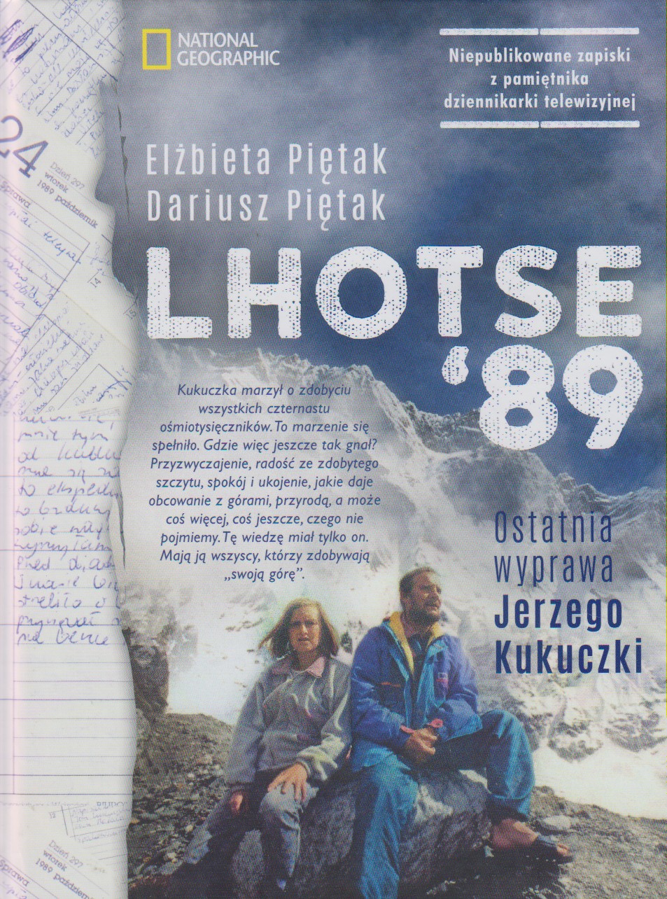 „Kukuczka marzył o zdobyciu wszystkich czternastu ośmiotysięczników. To marzenie się spełniło. Więc gdzie jeszcze tak gnał? Przyzwyczajenie, radość ze zdobytego szczytu, spokój i ukojenie, jakie daje obcowanie z górami, przyrodą, a może coś więcej, coś jeszcze, czego nie pojmiemy. Tę wiedzę miał tylko on. Mają ją wszyscy, którzy zdobywają „swoją górę”. Południowa ściana Lhotse to jedna z najtrudniejszych ścian w Himalajach - trzy tysiące metrów wymagającego terenu z trudnościami rosnącymi wraz z wysokością. Jej przejście uznano za największe wyzwanie himalajskie XX i XXI wieku. Mierzyli się z nią najlepsi na świecie wspinacze. Jerzy Kukuczka dwa lata wcześniej zdobył Koronę Himalajów i Karakorum. I nie miał dość. Na Lhotse zaprosił dziennikarkę z Telewizji Katowice, jego rodzinnego miasta. Elżbieta Piętak miała dwie pasje, wspinaczkę i filmowanie. Podczas wyprawy prowadziła dziennik, w którym notowała zdarzenia ważne i powszednie. „Tak naprawdę potrzebne jest szczęście. Jurek zawsze mówi, że oprócz umiejętności, rozsądku i wiary trzeba mieć właśnie szczęście. Przypomniały mi się różne publikacje, które ukazywały się na temat jego wspinania, wywiady z nim. Wielokrotnie przewijało się słowo szczęście”. 24 października Kukuczka nie odezwał się do bazy o umówionej godzinie. Kilka dni później świat obiegła tragiczna wiadomość: Jerzy Kukuczka zginął na południowej ścianie Lhotse. „Przez wiele lat zastanawiałam się, co by było gdyby? Gdyby wszystko zakończyło się sukcesem, a Jurek pokonałby tę cholerną ścianę. Byłaby wielka radość. […] Ale czy ma sens zastanawiać się, co by było gdyby? Ciągle myśleć i wracać do wspomnień? Ma. Bo nie da się zapomnieć tego, co przeżyliśmy. Nie da się też zapomnieć o Kukuczce”. [empik.com]